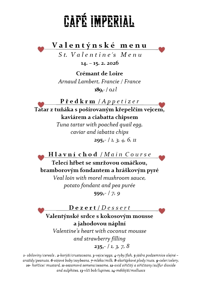 St. Valentine’s menu 14. – 15.2.2026