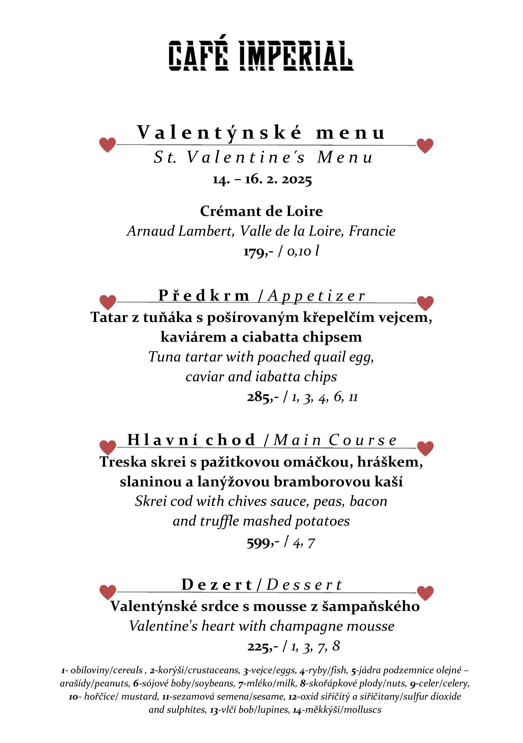 Valentýnské menu 14. – 16. 2. 2025